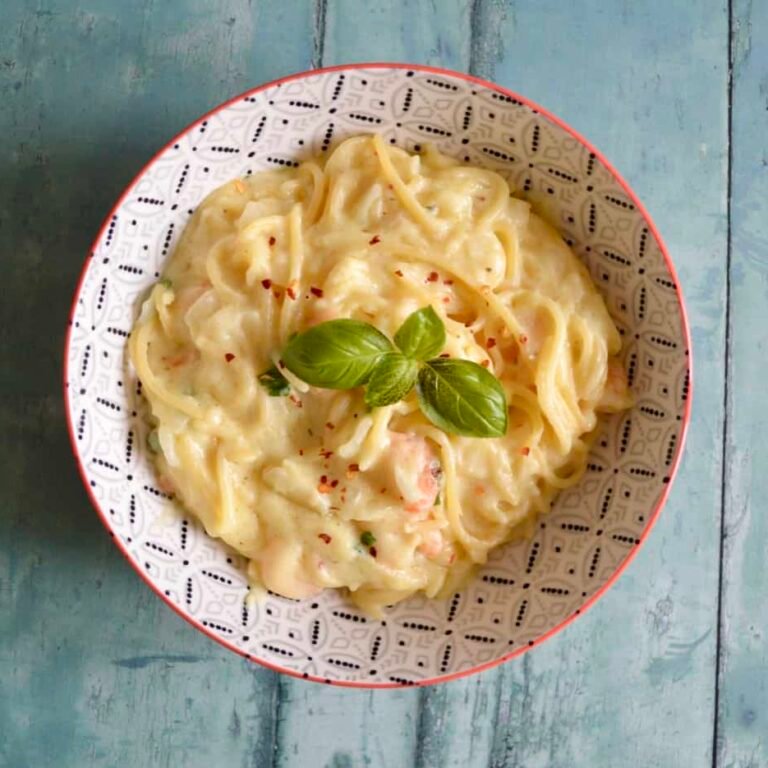 Cheesy Prawn Spaghetti (Gluten Free, Dairy Free)