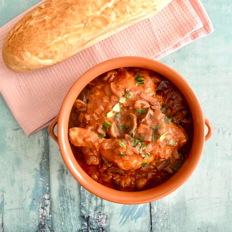 Tonight’s recipe is a perfect winter warmer – Chicken Cacciatore.   I think traditional cacciatore has olives in it – I have omitted them as it is one of the few things I don’t actually like.