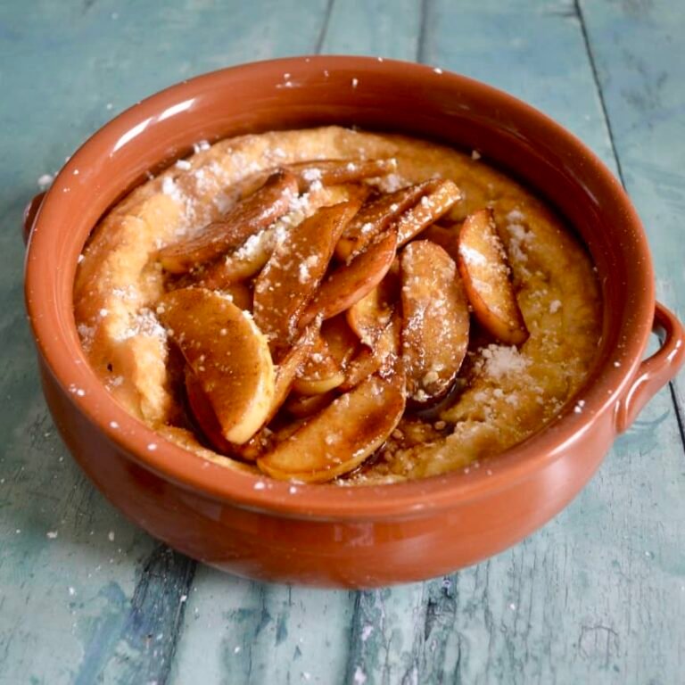This inspired me to have a go at making them at home and also googling why they were called Dutch babies! Not sure if there is any truth in this at all but seemingly a famous cafe in Seattle used to serve pancake Deutsch pancakes. The cafe owner’s daughter used to call them Dutch as she couldn’t say Deutsch and the name just caught on.