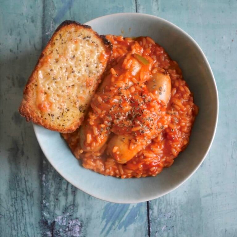Today’s recipe is a kind of mishmash of a French cassoulet and a British casserole. I’ve taken the rich tomato base and the braised sausages from a cassoulet but I’ve omitted the white beans as I’m not a fan. A number of traditional British casserole have pork sausages but also contain pearl barley which obviously isn’t gluten free. As an alternative to the pearl barley I’ve used some brown rice which works a treat.
